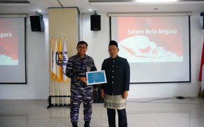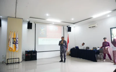 Kolonel(T) Dr.Ir. Aries Sudiarso ,S.T.,M.M., CHRMP , CTMP , Paban II Binteman spersal saat pemaparan materi Bela Negara